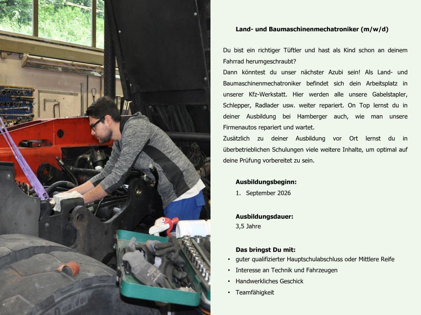 Bei Hamberger bieten wir verschiedenste Ausbildungsberufe mit Zukunftsperspektive an: